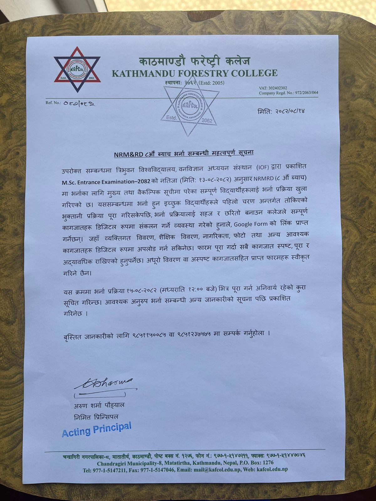 Welcome to Kathmandu Forestry College (KAFCOL)—a vibrant institution committed to academic excellence, innovation, and service to society. In a time of mounting global planetary crisis—marked by climate change, biodiversity loss, and resource degradation—the role of education in environmental stewardship has never been more critical. KAFCOL stands at the forefront of this transformative movement.